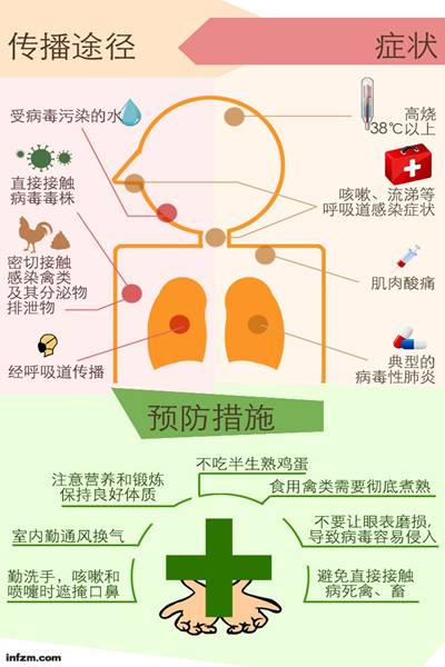 H7N9禽流感症状,传播与预防。 (李夏同/图)