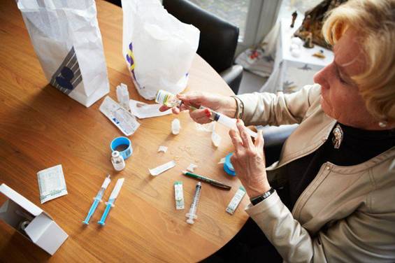 下午1:15,德弗里斯坐在她的餐厅桌边,把针头插进针剂瓶里。这药剂已经在她的冰箱里放了一个星期了。在她的两个孙女在边上看电视上的《白雪公主和七个小矮人》时,她缓缓地将针剂吸入注射器里。