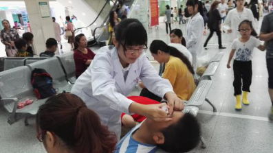 7月4日上午7点,小组所有成员在第一食堂集合,冒雨前往地铁站,一起乘坐地铁前往省中医院。8点左右到达省中,医院早已熙熙攘攘,人来人往,工作人员便开始了一天的忙碌。同学们也换上了白大褂,颇有医务工作者的感觉。